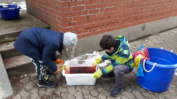 Danach teilten sich die Zweitklässler in Gruppen auf und beschäftigten sich intensiv damit, verschiedene Materialien, wie bunte Herbstblätter, Samen, Stöcke und Steine in der Nähe der Schule zu sammeln. Eine nette Dame in einem benachbarten Haus erlaubte uns mit Freude, die zahlreichen Kastanien in ihrem Garten zu sammeln.